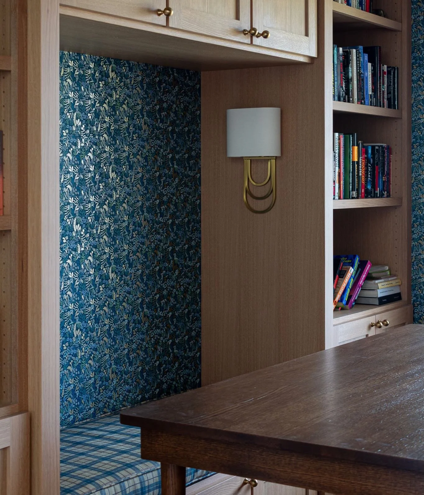 This library nook’s got everything: cozy vibes, a custom designed-and-built table (by yours truly), and the perfect chair for puzzle marathons or book binges. Who else is staying in? 🧩☕️