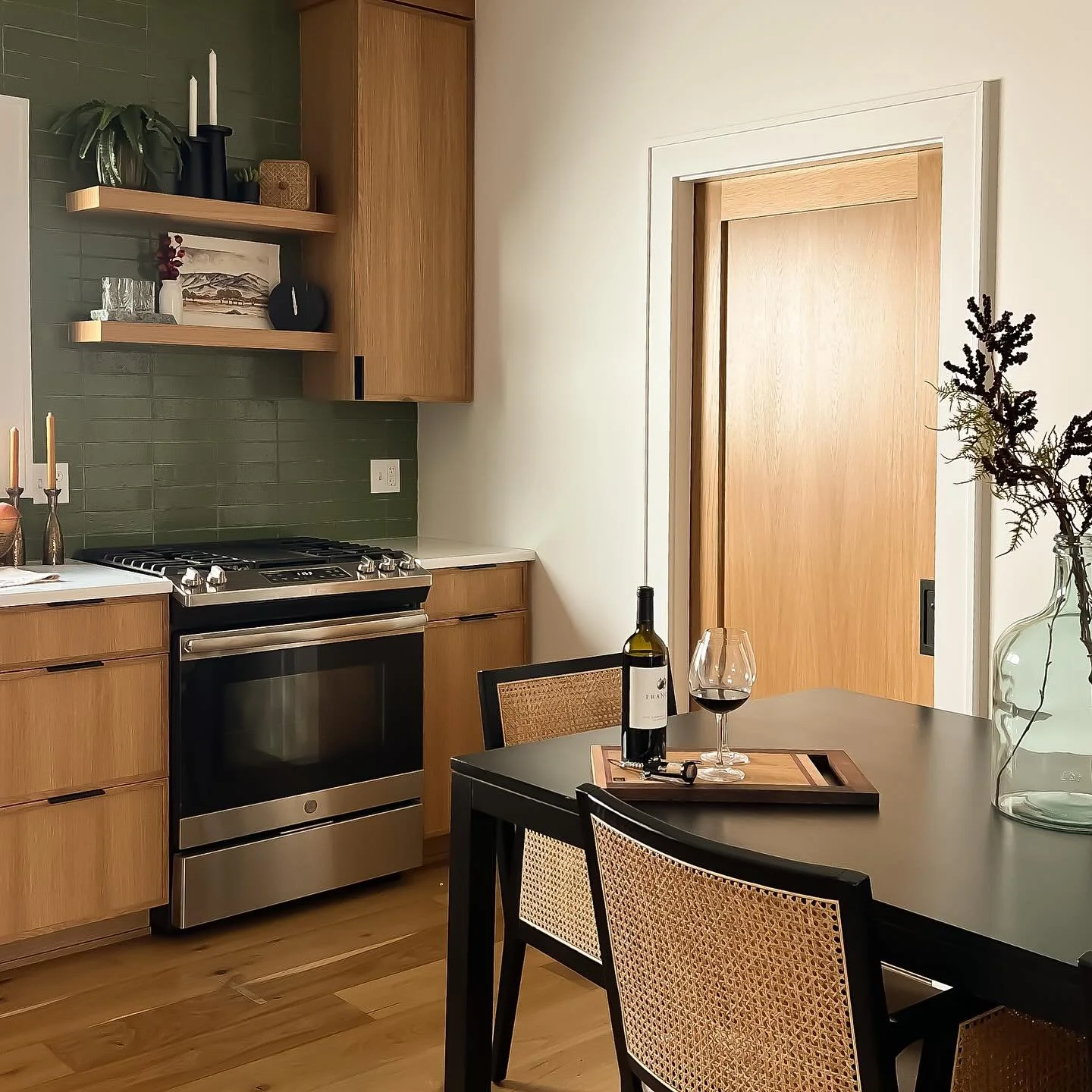#officekitchen#kitchenvibes#moderndesign#warmkitchen#kitcheninspo#greenbacksplash#whiteoak#whiteoakcabinets#goodvibesalways#interiordesign#wallawallainteri